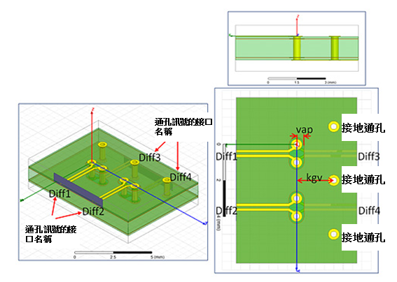 需要理論驗證,設計前驗證和差分貫孔的元件驗證的PCB設計人員,這些貫孔會極大地影響GHz頻段中的傳輸線特性。本分析案例調查絕緣錫墊直徑與接地貫孔位置變化時,影響二組差分訊號間的串擾。