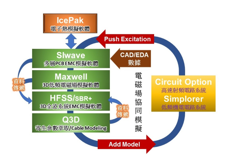 以Ansys基本的「場路協同」模擬配置,各個模組各司其職,相互配合,以場路協同為核心來思考建立各種部件及系統模型,包括電路、電磁場,進而獲得相應的傳導/輻射模擬結果。配合選項模塊,如參數掃描、自動最佳化,高效能運算等功能,可以大幅提升EMC模擬運算效率,進而提高工作效率、縮短研發週期。