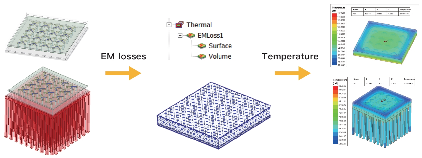 高頻電路一直存在熱效應的影響。過往採用低頻段通訊時,這樣的熱影響往往是直接忽略。然而進入到 5G 毫米波,大量的晶片與高頻所產生的熱問題已嚴重影響到電性,甚至是元件的壽命。因此熱問題已成為當前高頻模擬必須要考量的多物理耦合必要物理量之一。