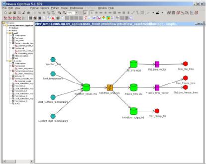 本應用展示如何使用OPTIMUS與Moldflow計算在不同的射膠時間、熔膠溫度、模具表面溫度及冷卻入水溫度下最大凝固時間。