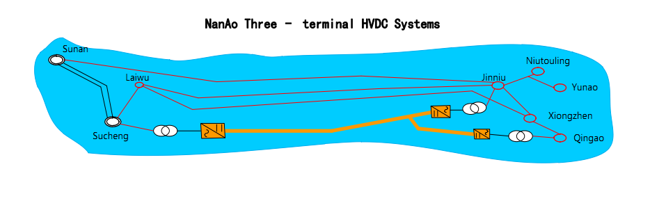 南澳的直流輸電系統是世界上第一個多端直流輸電計畫,此計畫設計的容量為200,000 KW,且直流電壓為± 160 Kv,包含青澳、金牛、塑城三座換流站。OPAL-RT的即時模擬技術模擬了真實的直流輸電系統,包括交流和直流電網、海上離岸風力發電廠、直流電纜、MMC站等。即時模擬器連結到CSG的控制和保護元件。這個最接近真實情況的測試方法讓南澳直流輸電系統在真實電網運行前能進行全面性的測試和準備。