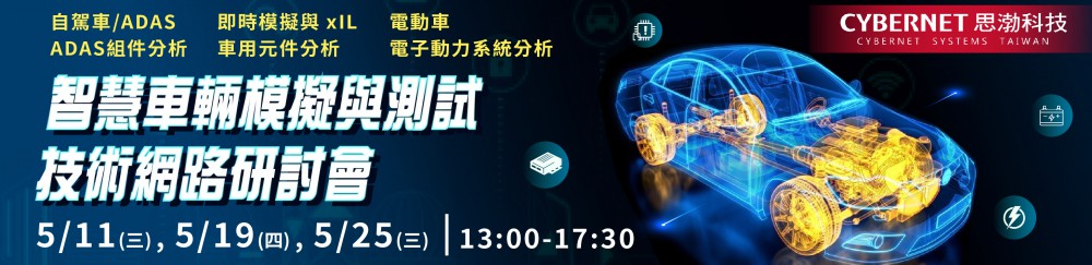 從5月11號開始,每週根據不同主題做車用產業的趨勢與應用,將結合模擬與測試的整合方案,針對自駕車、ADAS、即時模擬、車用元件以及電動綠能車、電力電子主題做應用。送上報名傳送門: