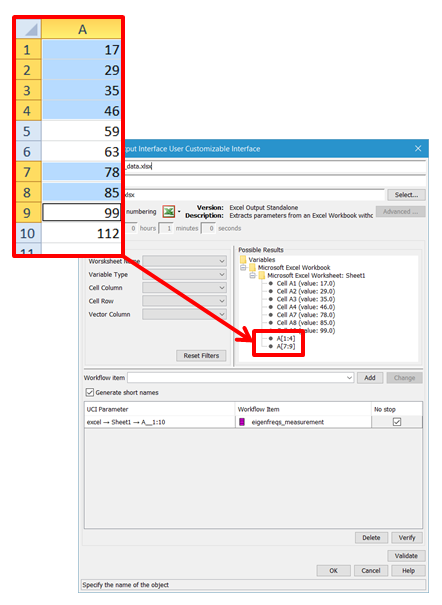 - 可從固定的 Excel 頁提取數值,例如:用於校正的量測數據向量