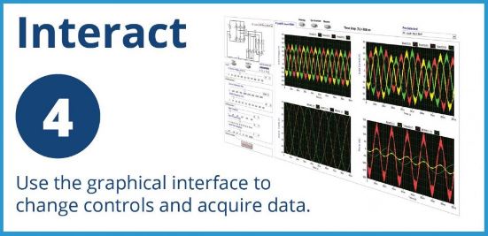 於 RT-LAB 使用自建置的工作平台,利用 Simulink 的數字、開關、拖曳、示波器、數字顯示器等模型,於即時模擬時線上調控參數並觀看模擬結果。 |