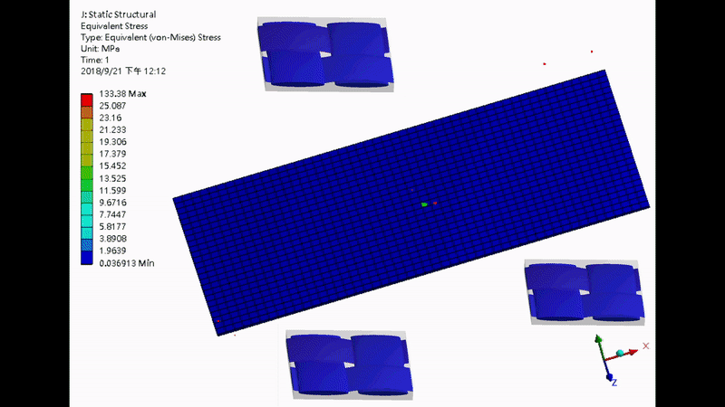將尺度分析結果中的材料參數應用於宏觀模型材料參數中,然後進行宏觀結構模擬與實驗驗證