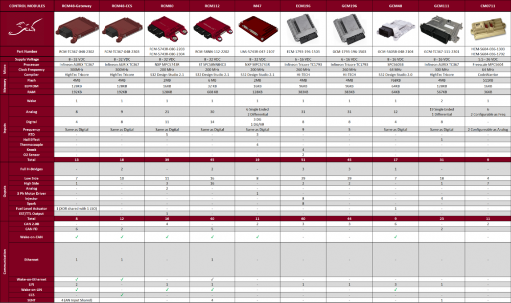 硬體電子控制單元規格列表(點擊下圖可放大檢視)