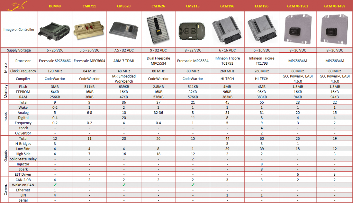 硬體電子控制單元規格列表(點擊下圖可放大檢視)