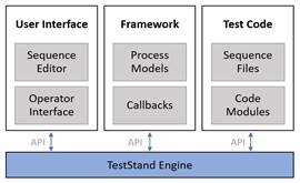 | 可使用 TestStand 內建的轉接器,呼叫以其他語言撰寫的程式碼,達到擴充測試序列功能的目的。可以將程式碼模組的執行作業自動化,以介接 DUT 及測試設備。 | 可以使用 TestStand 原生工具來簡化測試裝置的設定作業,以此縮短測試時間。您可同時測試多個裝置,或在同一個裝置上同時進行多項測試,以提升測試效能。 |