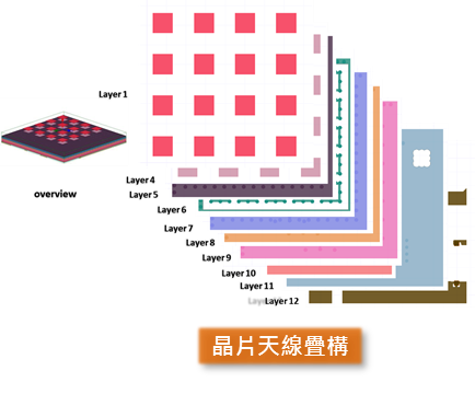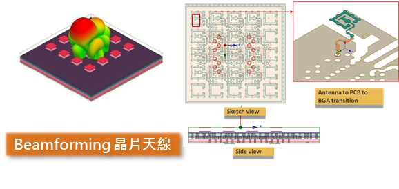 Ansys HFSS中的3D Layout可用於協助晶片天線(Antenna in package)開發。透過能快速模擬疊構的3D Layout來設計饋入網路,可大幅縮短模擬的時間與資源,達到快速開發產品的目標。