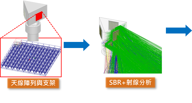 天線安裝後的性能分析可使用Ansys HFSS中的SBR+求解器求解。針對使用環境對5G天線特性的影響,可同時進行前期評估,方便設計者盡早提出改善方案。