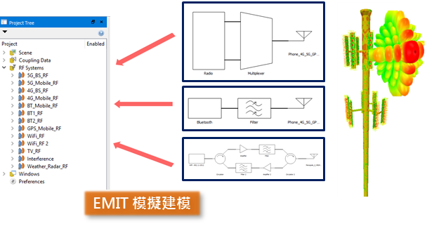 除了陣列與多物理場分析,Ansys HFSS也針對毫米波裝置如晶片天線、小基站等5G通訊裝置提出對應的解決方案。透過Ansys HFSS與 Ansys HFSS中3D Layout進行晶片天線設計,可快速且有效的將疊構導入並進行偕同模擬。透過 Ansys HFSS中的SBR+求解器與EMIT平台來進行毫米波裝置安裝後之性能與TX/RX射頻系統傳輸特性分析,加速產品開發時程。