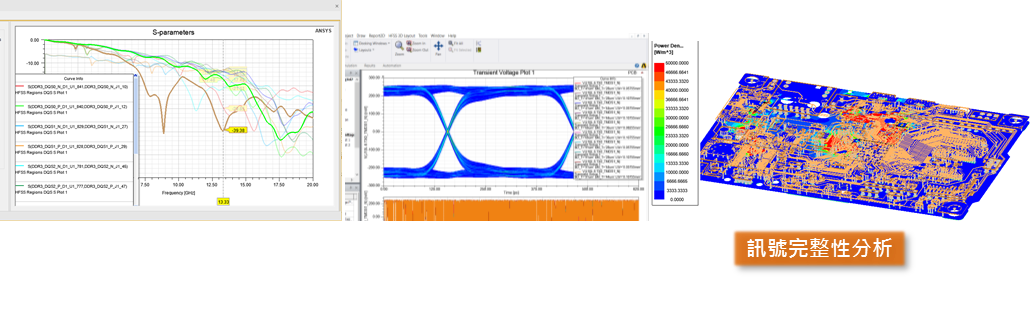 使用Ansys Electronics Enterprise內的Ansys SIwave進行訊號模擬分析,可得到S-parameter、TDR、EYE-Diagram等結果。在時域以及頻域的分析下,能完整判斷訊號的品質,並進一步提供PCB設計的改善方案。
