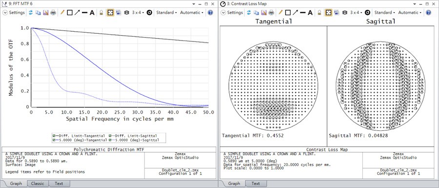 該示例演示了如何使用 OpticStudio 中的對比度損失圖功能來找出什麼樣的表面形狀或是表面形狀的改變能夠有助於優化特定空間頻率的 MTF。