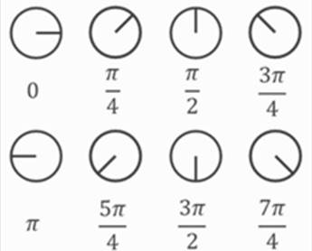 指針的位置代表了波前差的大小。對於光瞳上的每個點,計算光瞳函數移動前和移動後的平均光程差(OPD),並對 2π 取模。該值決定了指標的方向,如下圖所示。當 OPD 為零時,指標指向正 X 軸方向,並隨著 OPD 平均值的增大延逆時針方向旋轉。