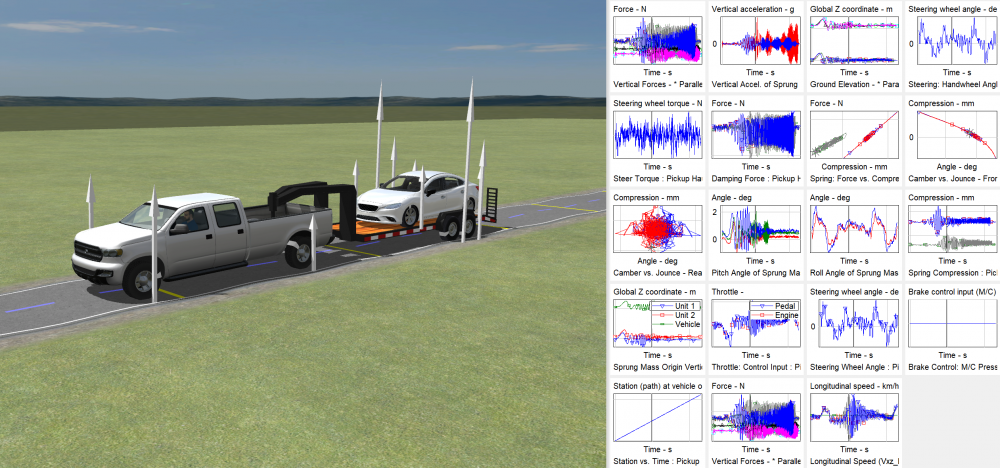 Parallel Solvers - Vehicle Hauling模擬支援同使求解多台車輛數學模型,包含置於貨架上車輛之懸吊、震動與加速度等行為。