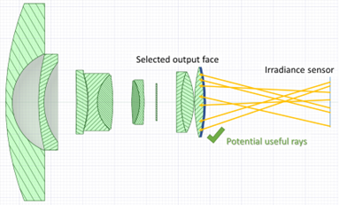 當使用照度感測器進行逆向模擬時,光線向各個方向發射,在某些情況下,如相機鏡頭物鏡,可能效率不高。Output-face設置可以使從感測器出發的光線在反向傳播過程中瞄準輸出面,以提高性能。照度感測器的此功能現在與Ansys Speos GPU逆模擬相容。