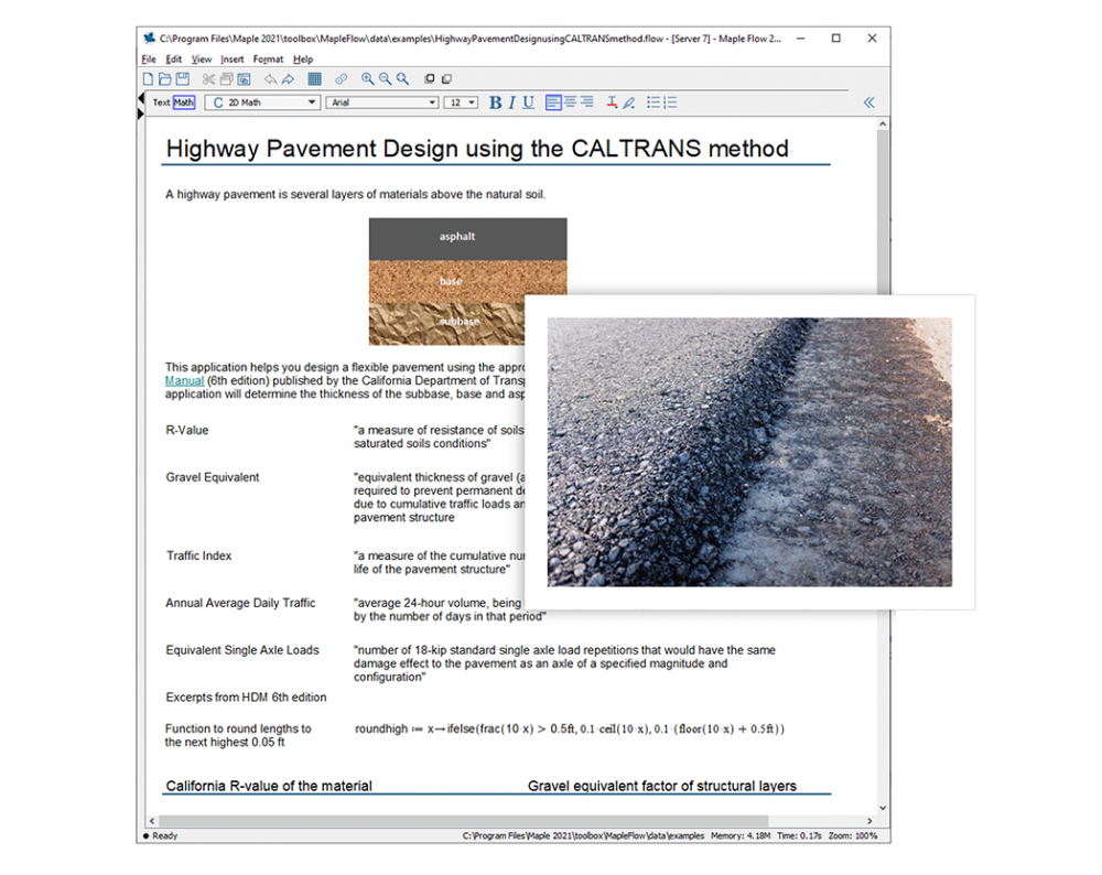Maple Flow 是進行計算所需的最高級“紙張”。通過較低的學習曲線,您可以輕鬆地創建新文檔,調試工作,並建立一套全面的應用圖例庫。 |