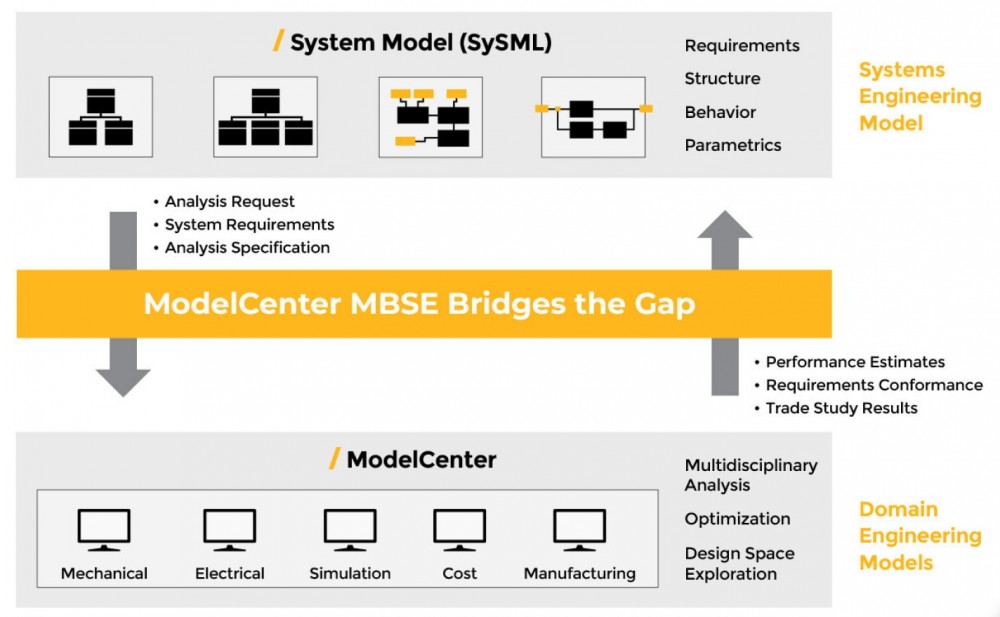 Ansys ModelCenter 用於集成多學科模型(基於數學計算或模擬等)來構建分析工作流程並自動化分析過程,並在系統設計的早期階段分析需求執行驗證以支持設計空間探索、設計權衡和基於分析工作流程的優化。 Ansys ModelCenter 可以將多學科模型與系統架構模型相結合,使得系統架構模型可以與主題模型協同設計和驗證。