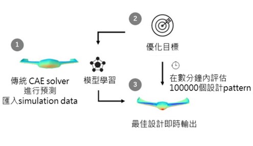 航空業(無人機外型優化設計) 透過 Neural Concept 建構 Surrogate Model進行機翼外型優化設計,可直接處理複雜的3D模型及資料,並進行優化設計分析,將優化升力提高了4.25%、阻力降低了6.25%。 |