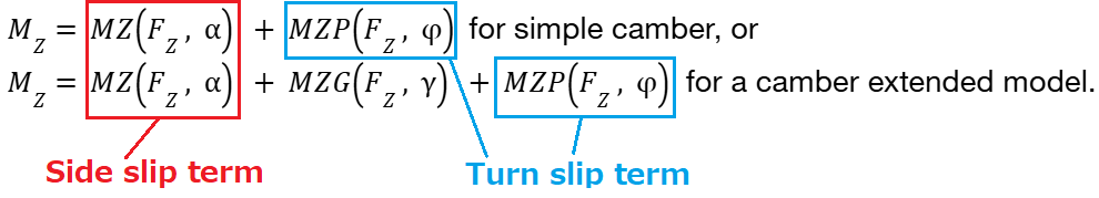 新增的轉向滑移效應可改善輪胎回正力矩,並引入新的變數 φ。 |