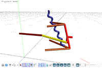 您所設計的多體機構會自動被轉換成球棒模型(ball and stick 3-D models)以得到系統在外觀及動態行為上更具體的概念。這個步驟會在自動MapleSim中自動進行,您無須再作任何額外的設定。