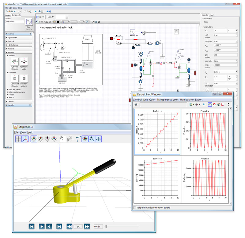 即時產生的設計文件替您擷取模型背後的分析過程 您在MapleSim上所做的設計之相關資訊都會被完整保留,並且能即時輸出至Maple的技術文件編輯環境中。您可以藉由文件完整描述、註解您的設計,確保您的想法能完整地保留下來。