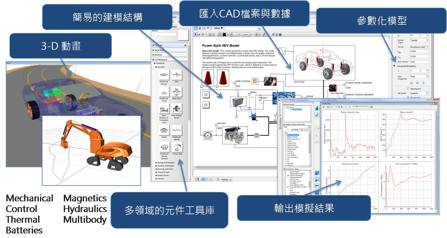 模型元件圖示與實際元件相似 您再也不需先將您的設計推導出方程式,再將他們建成信號流程方塊。同時您可以輕易地修改、重建系統,因為建出的模型就跟您手畫的一樣簡單易懂,所以這整個過程將會節省許多時間。