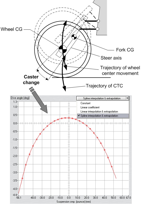 透過BikeSIm可模擬車輪中心軌跡運動和caster的角度變化