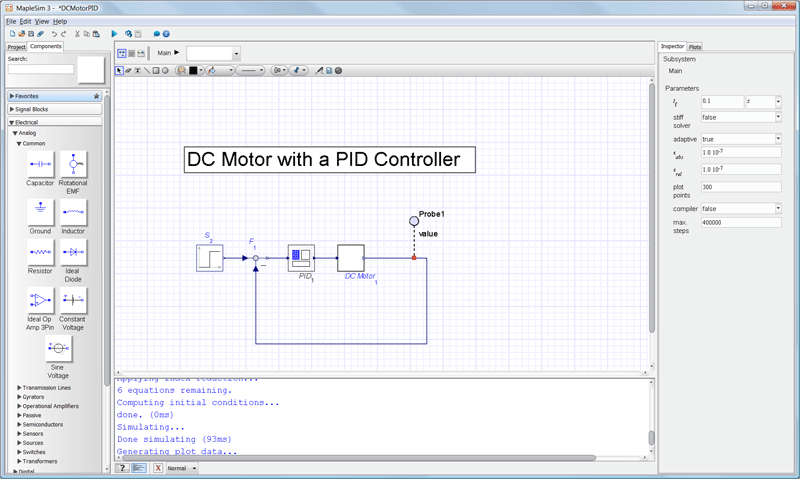 - 範本,文件以及範例均無縫地結合至 MapleSim 環境,提供單一且一致的界面發展物理模型與控制器。