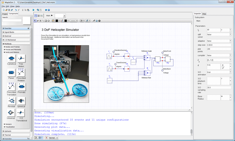 無論是 MapleSim 內建的元件,或是使用者自訂的元件,都可自動整合在一起。