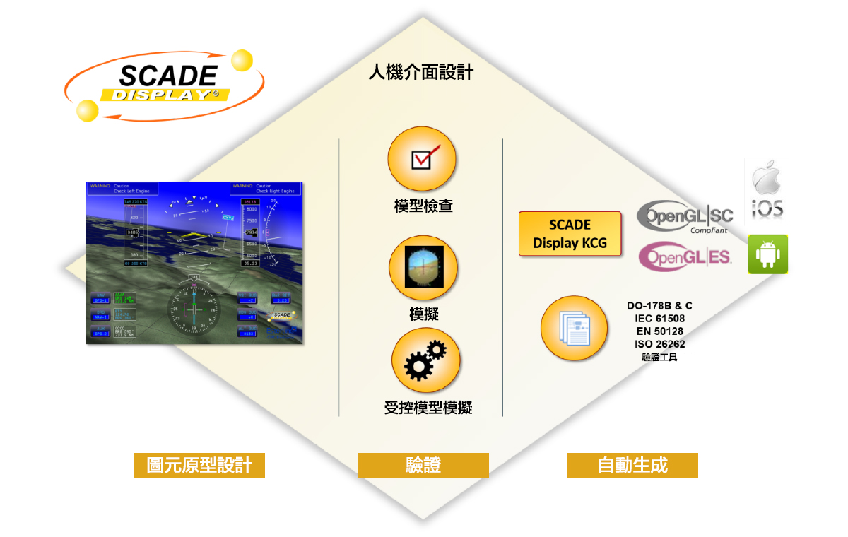 • 支持在圖形中嵌入SCADE Suite或C程式碼,使介面的控制與程式碼具有邏輯性的連結