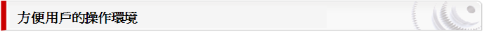 各種設置可以通過一個簡單的工具欄和 GUI 功能(Graphical User Interface)很容易地操作。不只可以直觀定義輸入的資訊,零件之間的關係和設定的過與不足都可以在視覺上被顯示出來,可以避免簡單的設計過失。