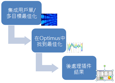 這種設計上的問題事實上就是最佳化問題。取而代之的最佳化數學表達式,最佳化對待模擬模型如黑箱最佳化。基於模擬最佳化過程編入到 Optimus 中,一個數值最佳化的軟體解決方案,調整模擬模型的輸入變量,來確定達到最好水平的結果。