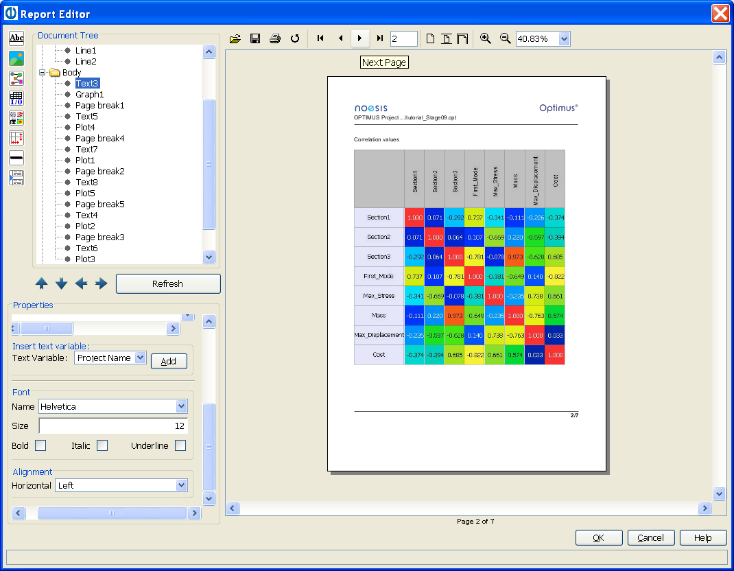 Optimus 報告可以以 PDF、HTML、RTF 或意向活動模板的格式進行進一步的編輯輸出和共享。使用專用的對話框,您可以靈活地決定報告內容上的佈局可以自由地插入頁眉/頁腳,增加您的企業形象,包括值得一提的項目細節。